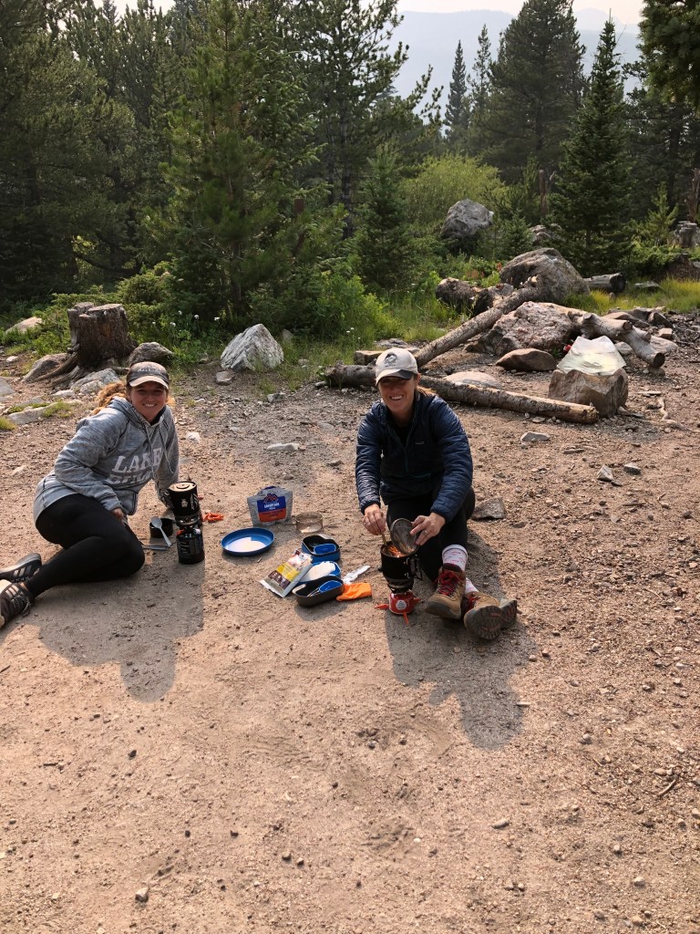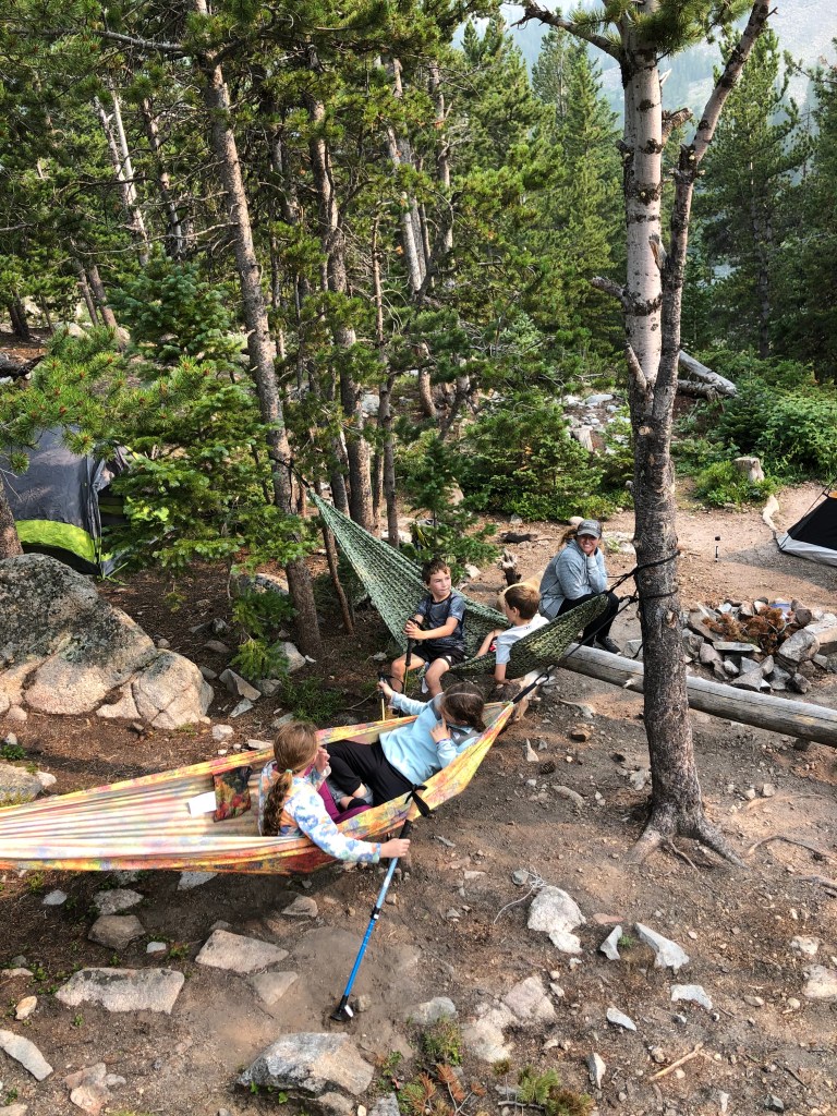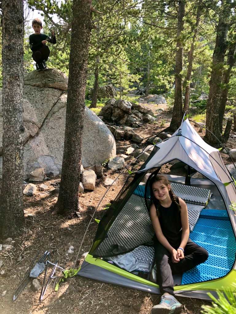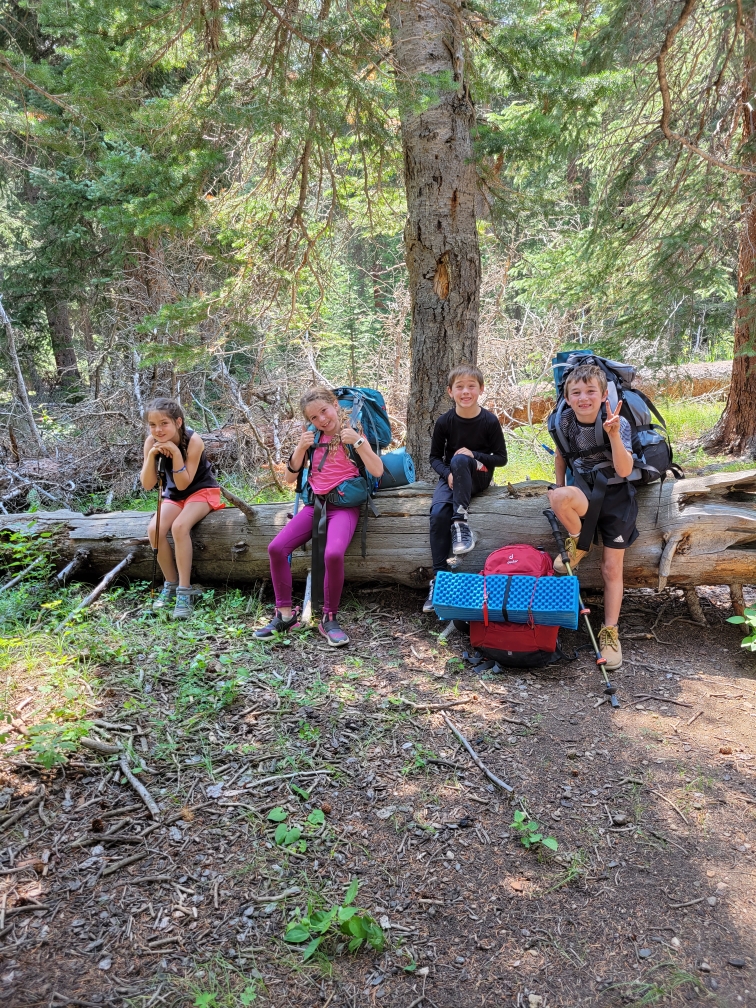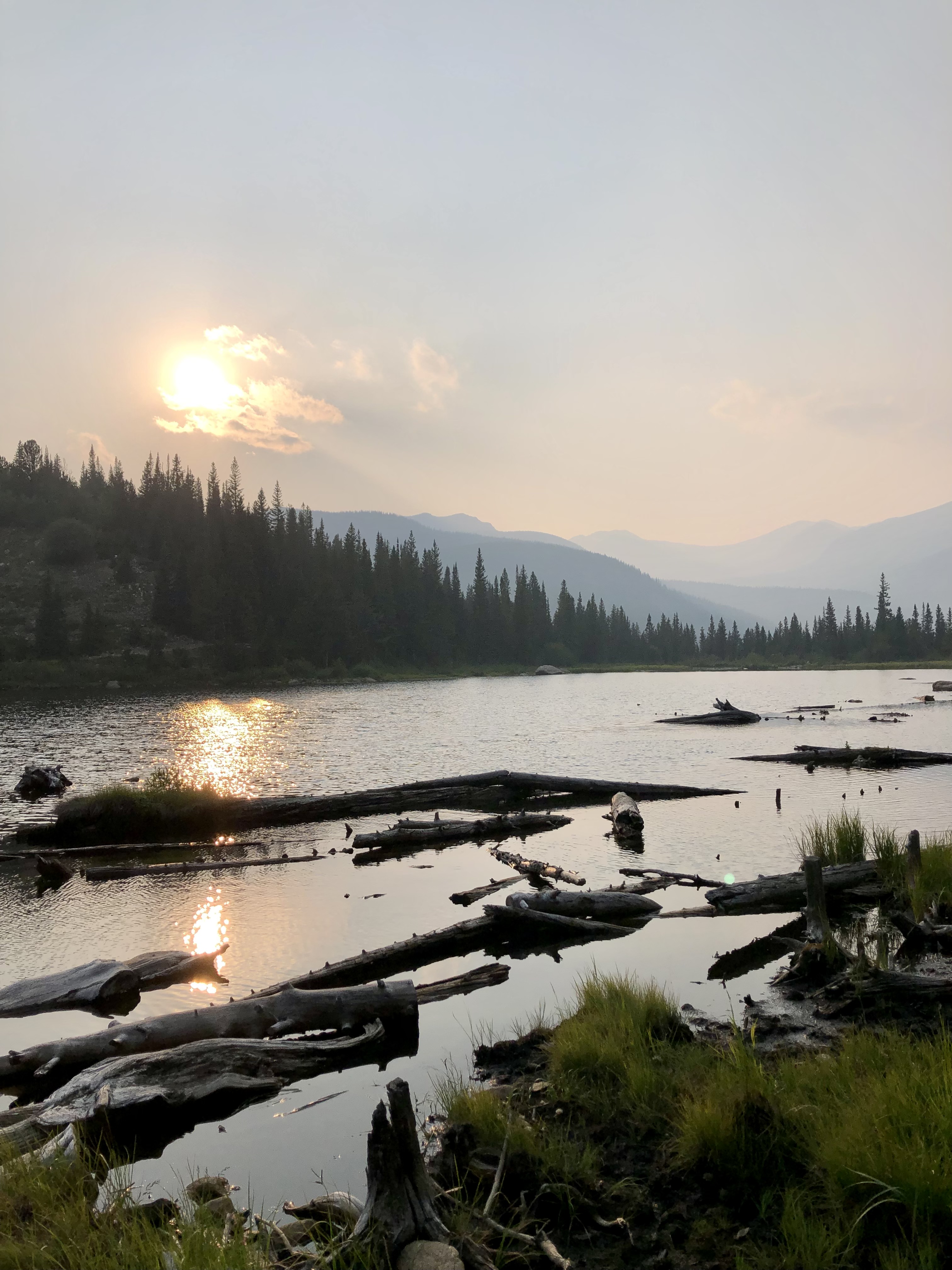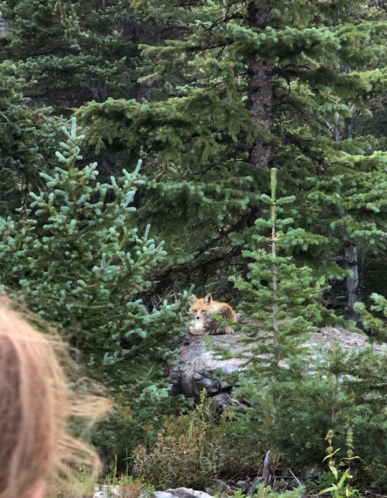 Back at camp, the kids were enthralled with a beautiful fox that decided to take a nap on a boulder near us as we cooked dinner (using our Jet Broil of course—one of my favorite backpacking items of all time!). The fox hardly seemed bothered by our presence. Meanwhile, speaking of bothersome: the heavy smoke from all the wildfires across the western US. It was so thick this evening that it wasn’t until morning when we realized the Continental Divide stood poised in the distance. A delightful view over morning coffee!