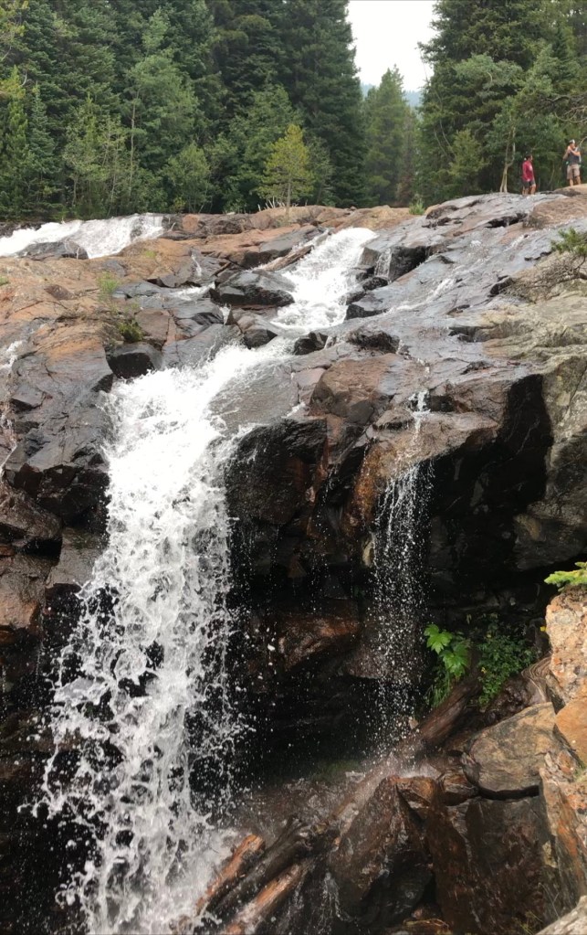 -Trail characteristics: Lots of loose rocks for the first half. Wildflowers when in season, along with Aspen groves and Pines, providing plenty of shade. Waterfalls and river/creek crossings. Alpine Lake.