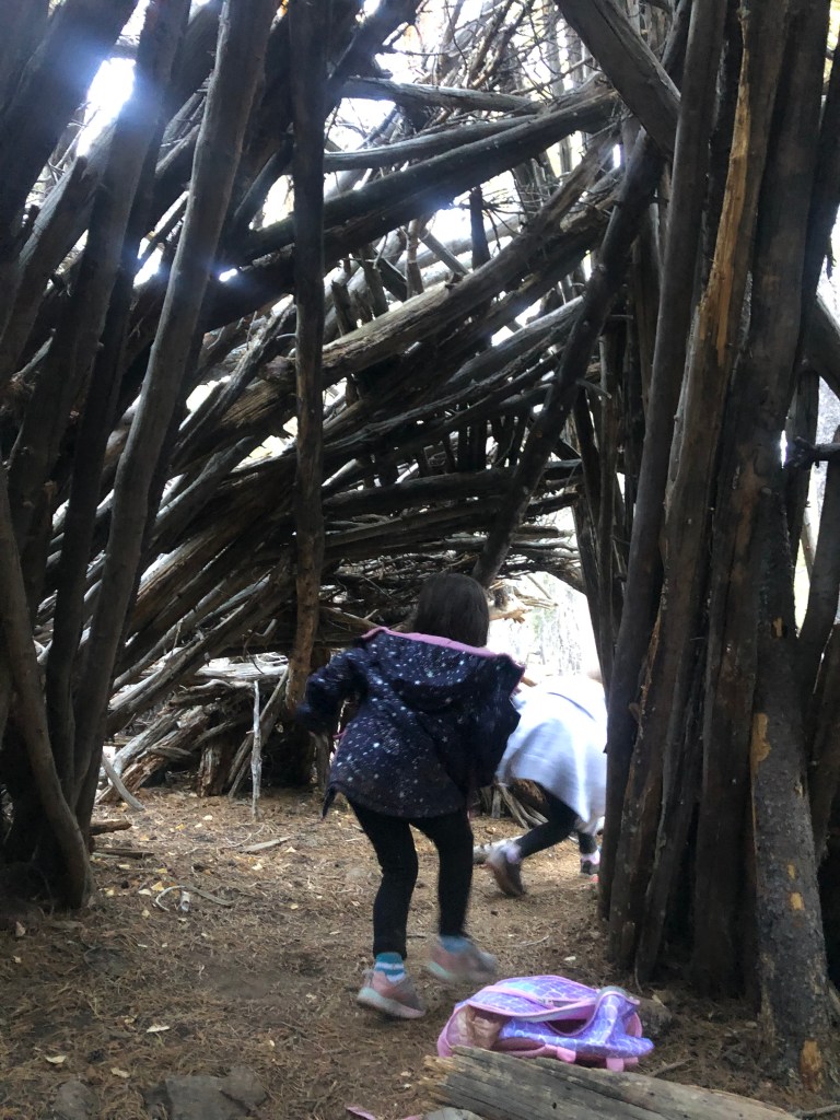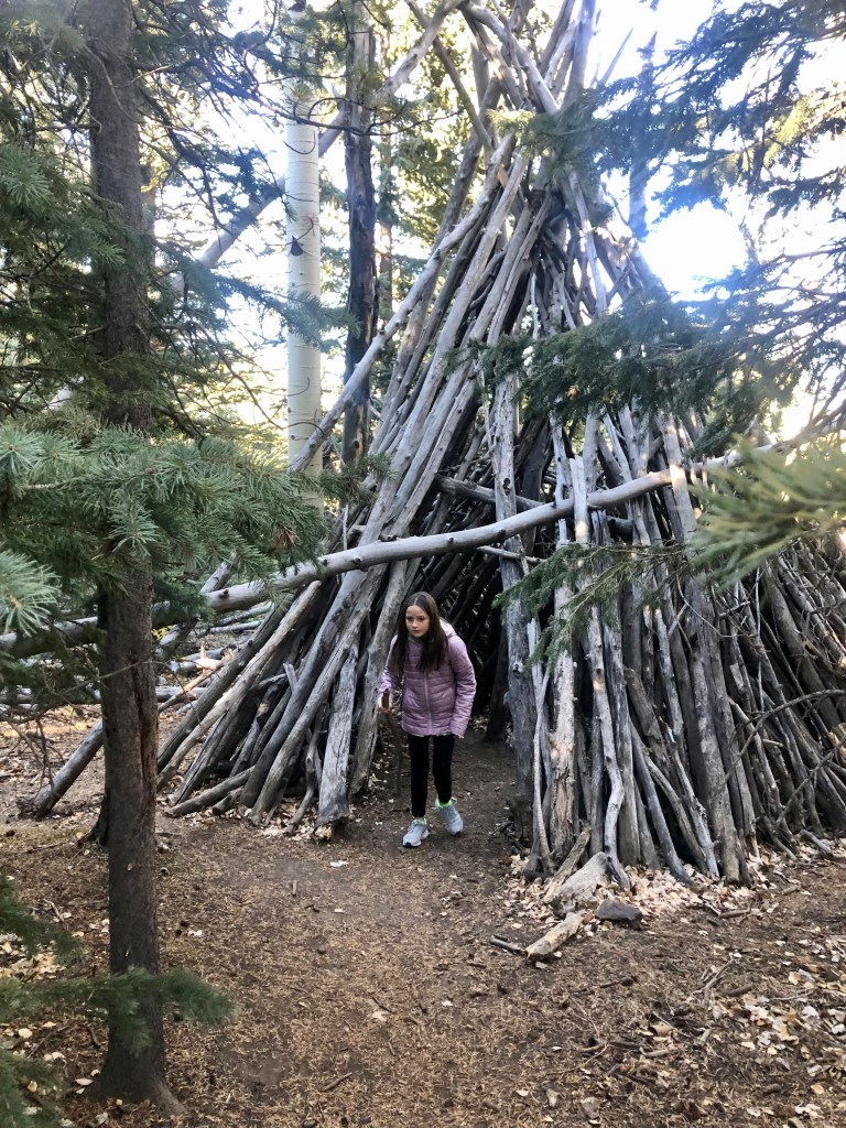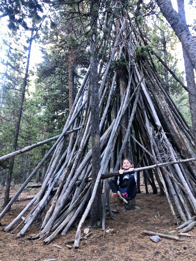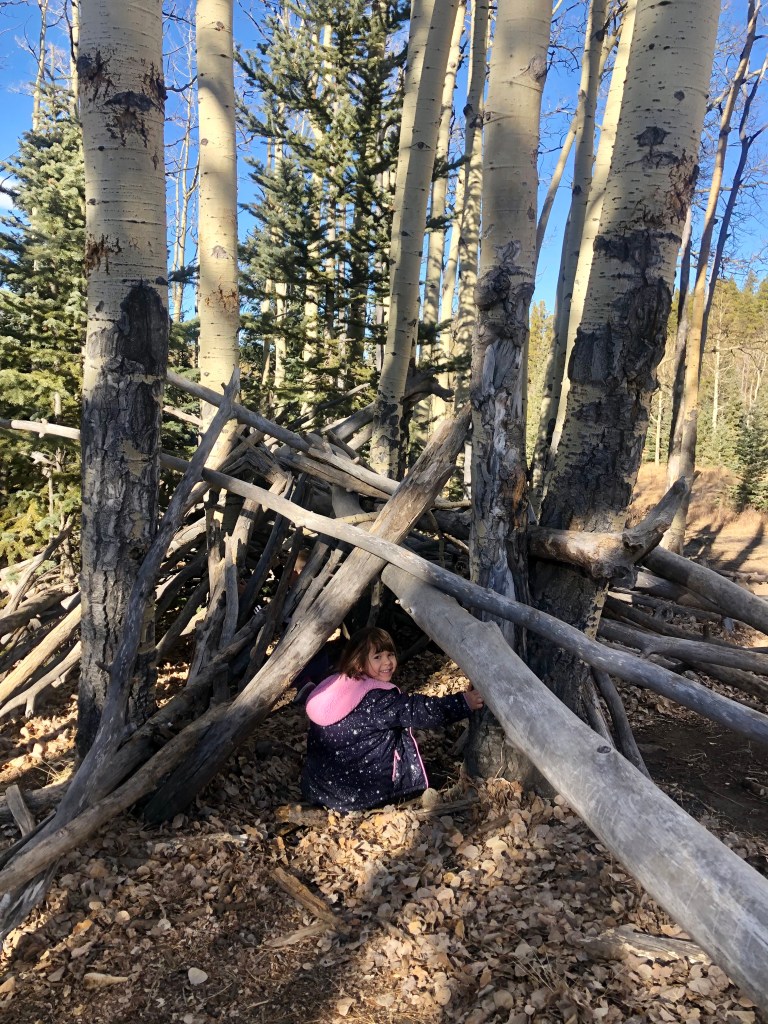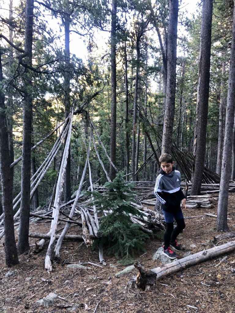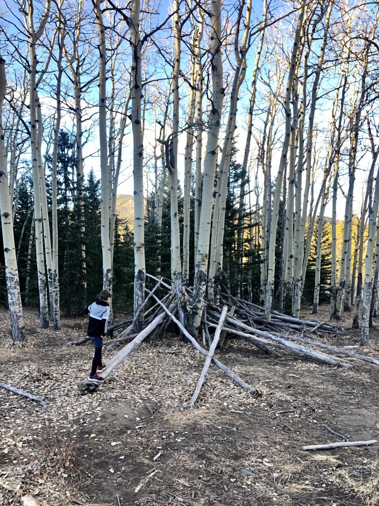 The Aspen grove was indeed enchanting! And it also housed Lean-To #1—our first surprise (of many to come). The kids adored playing on, and in it…but what came next rocked our wool socks off!